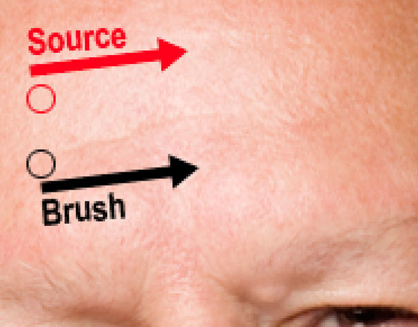 Для начала откройте фотографию в Фотошопе и выберите инструмент Клонирование. Выберите Источник (ALT+клик) и выберите участок кожи без морщин в качестве источника. Затем аккуратно накройте морщину на лбу, используя инструмент Клонирование. Повторяйте эту операцию, пока морщины полностью не исчезнут.