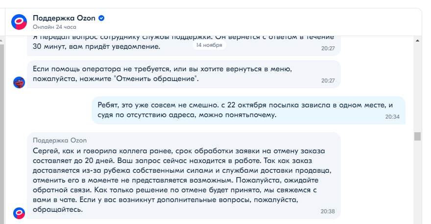 В случае возникновения проблем с доставкой, обратитесь в службу поддержки Озон для решения ситуации.