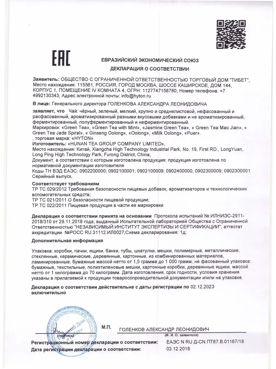 Декларация о соответствии