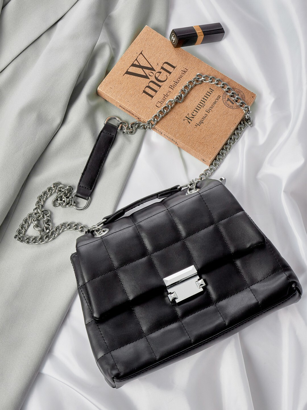 Окружите сумку другими модными вещами, чтобы создать стильную композицию и вызвать желание приобрести ее.