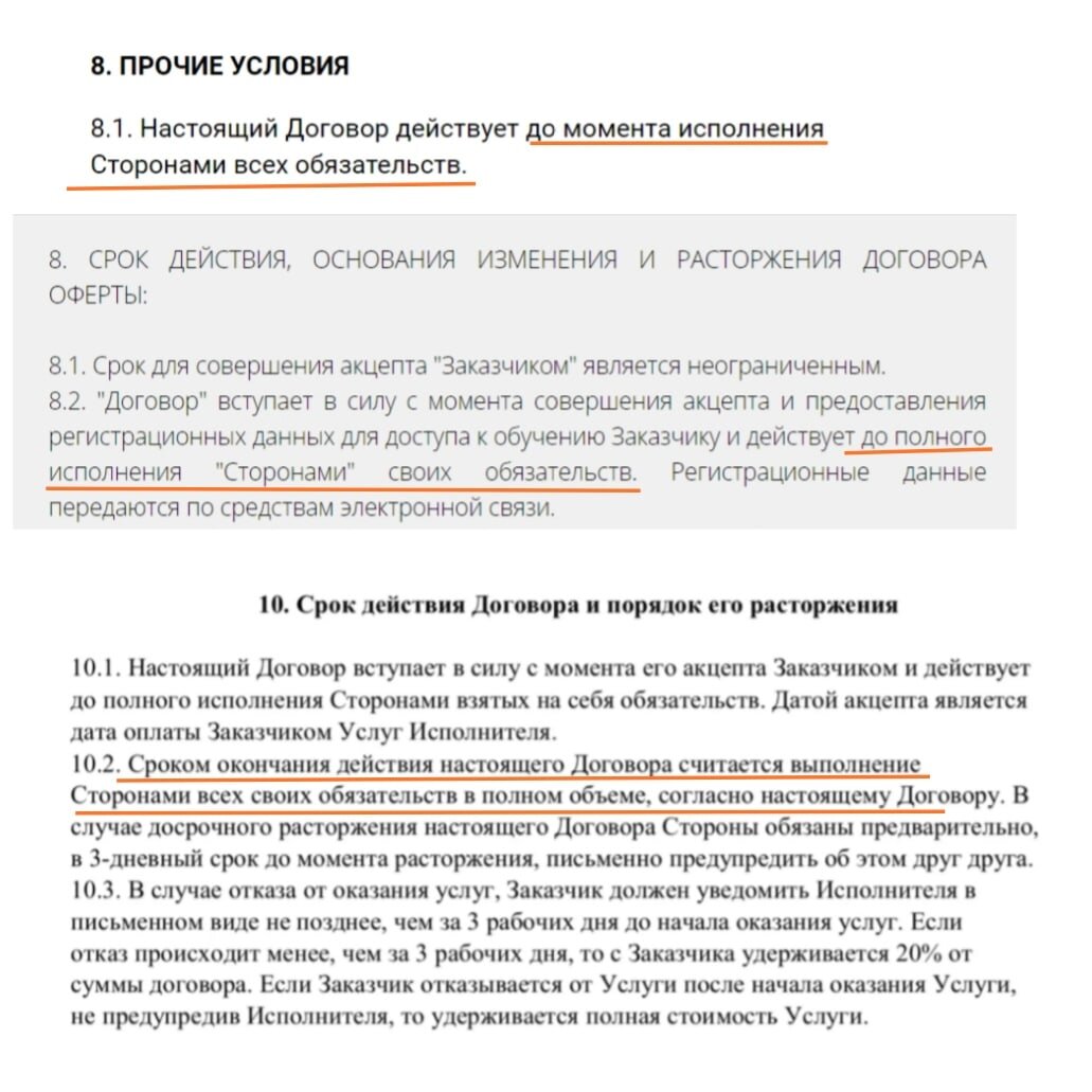 Помните, что договор оферты может быть отозван или прекращен в случае неправомерного поведения одной из сторон.