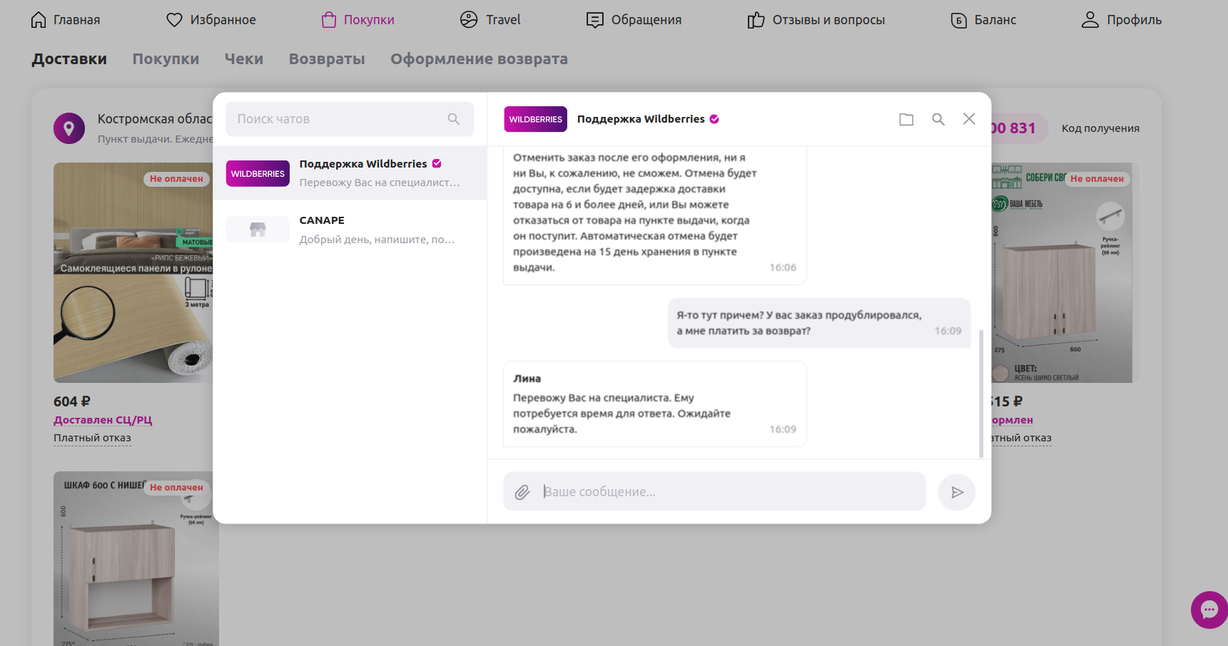 Как Wildberries обманывает покупателей , нет товара , а за возврат требуют 500₽