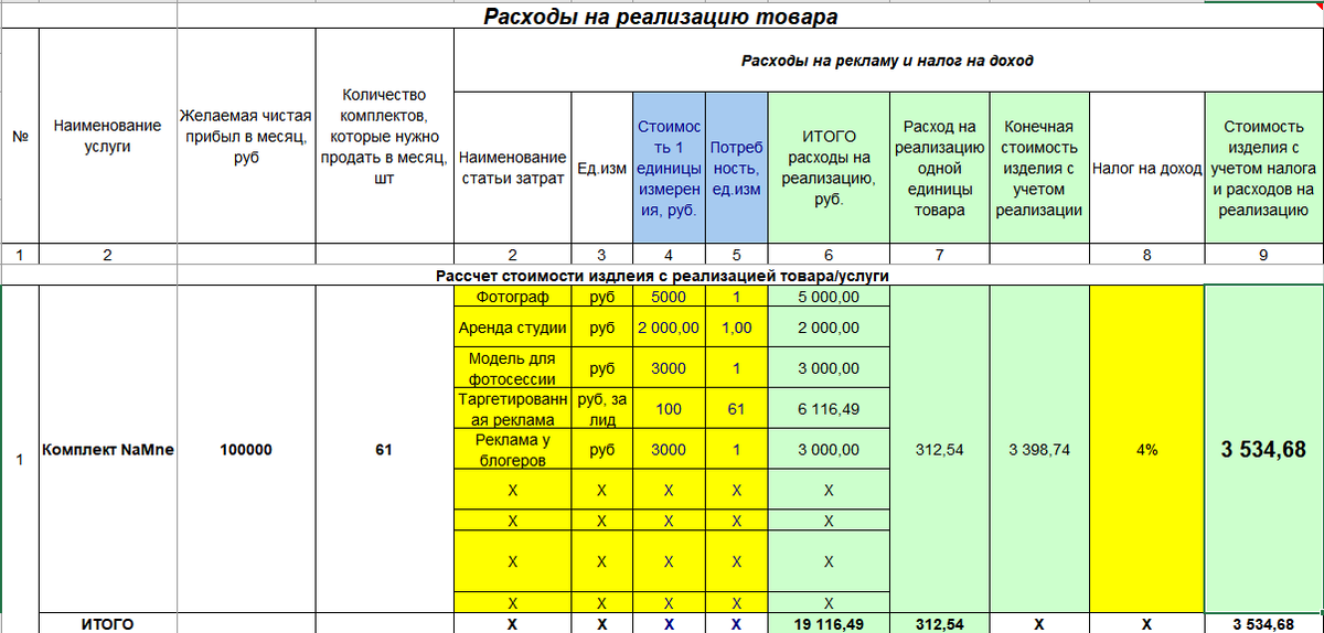 Как рассчитать стоимость услуги, чтобы была прибыль? Пошаговый расчет в Excel