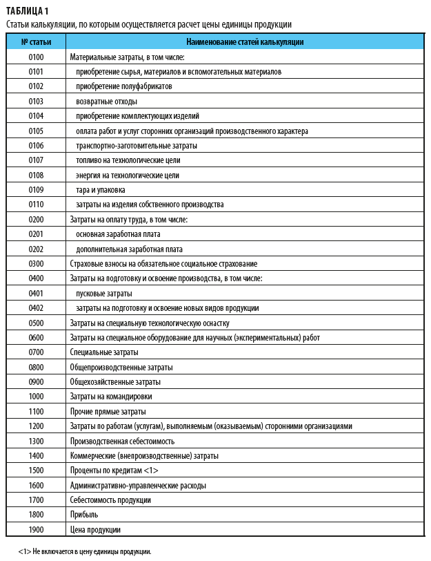 Калькуляция цены товара