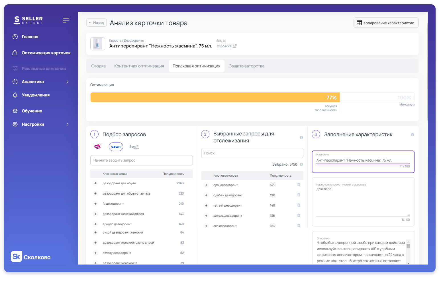 Оптимизируйте заголовки, описания и характеристики товаров, чтобы повысить их релевантность и увеличить вероятность показа в поиске.