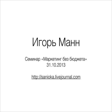 Маркетинг без бюджета 2.0 - Советы на 2019 год - Игорь Манн [Вебинары]