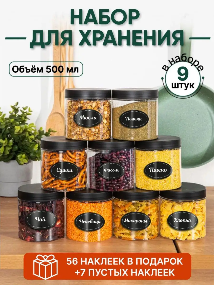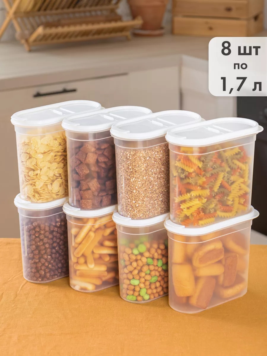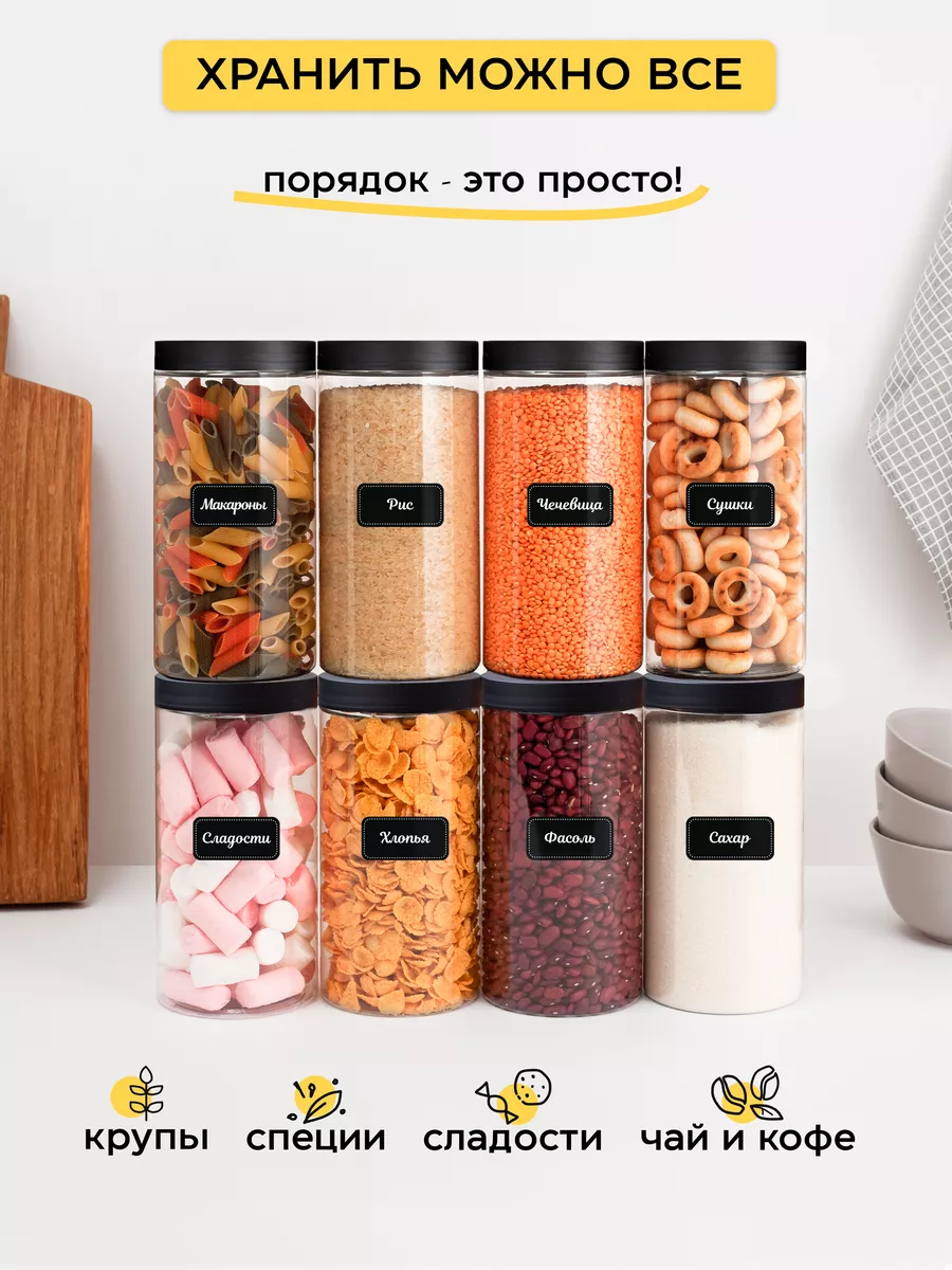 Контейнеры пластиковые СтильВиль для хранения на кухне сыпучих продуктов макарон круп