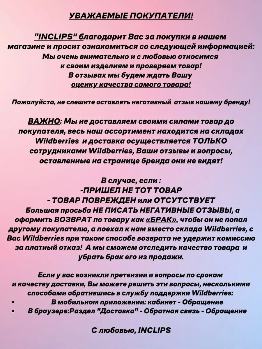 Внимательно проверяйте внешний вид и состояние товара при получении.