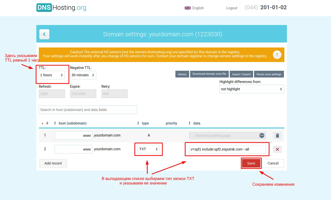 Как изменить или создать TXT-запись для домена