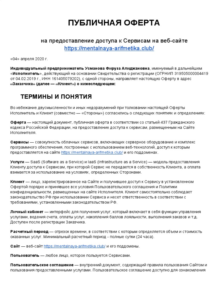 Оферта или пользовательское соглашение?