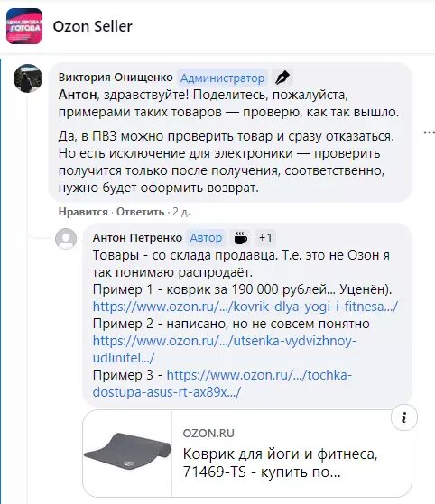 Возврат СЕЛЛЕРУ OZON!