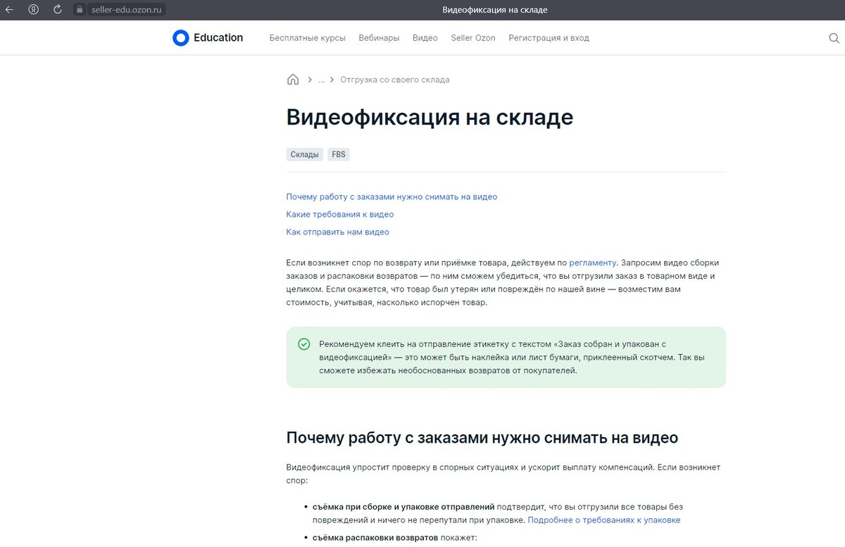 ВОЗВРАТЫ FBS OZON SELLER