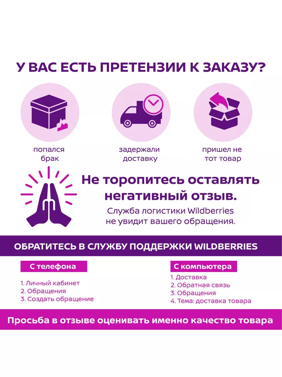 В случае возникновения проблем с товаром, не стесняйтесь рассказывать о них. Опишите проблему, приведите детали и укажите, как вы пытались ее решить.