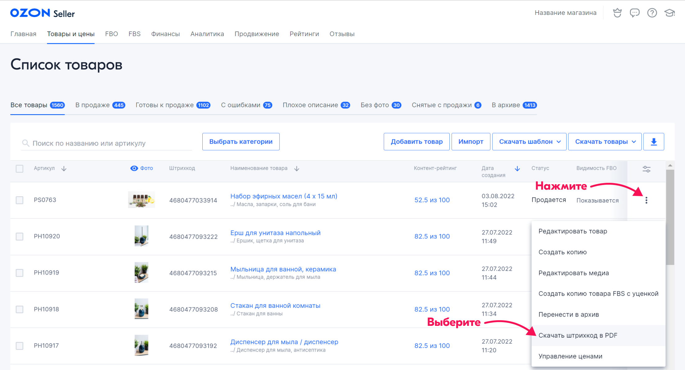 Требования к размеру штрих кода на Ozon