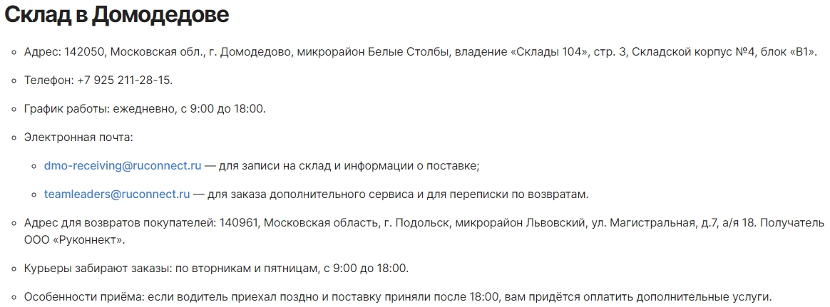 Проверяйте наличие складов в своем регионе перед оформлением заказа.