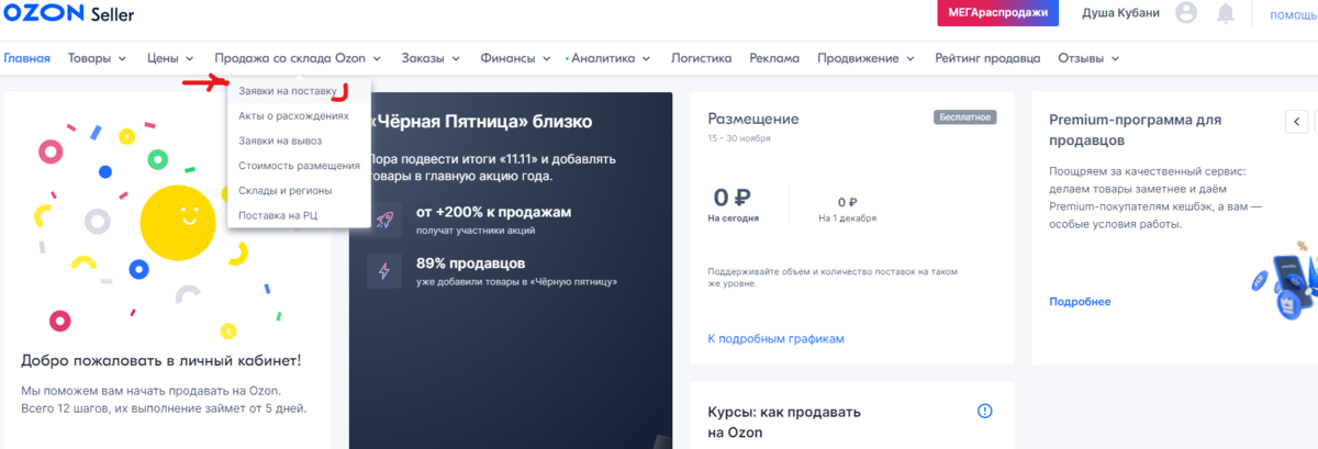 Создание поставки кросс докинг на OZON Инструкция по оформлению заявки на поставку товаров на склад