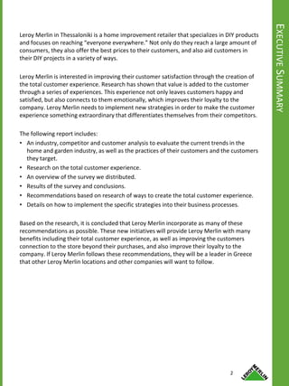 Постоянно обучайте и мотивируйте персонал в Леруа Мерлен. Хорошо обученные и мотивированные сотрудники способны значительно повысить качество обслуживания и уровень удовлетворенности клиентов.