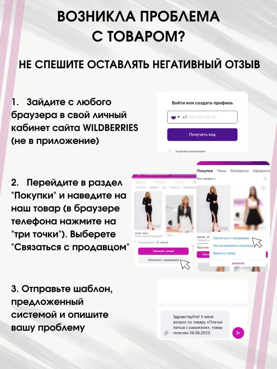 Если у вас возникли вопросы или проблемы с товаром, свяжитесь с поддержкой Вайлдберриз для получения помощи.