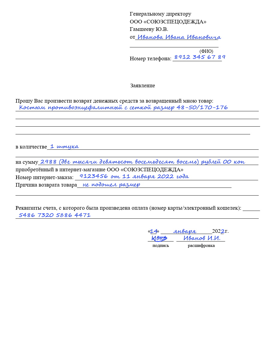 Претензия на возврат товара в магазин - образец - пошаговая инструкция